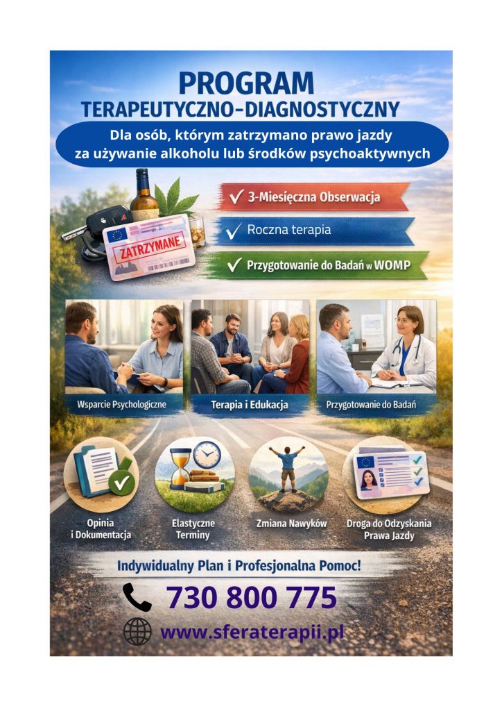 Oferta dla osób, którym zatrzymano prawo jazdy za prowadzenie pojazdu pod wpływem alkoholu lub substancji psychoaktywnych.